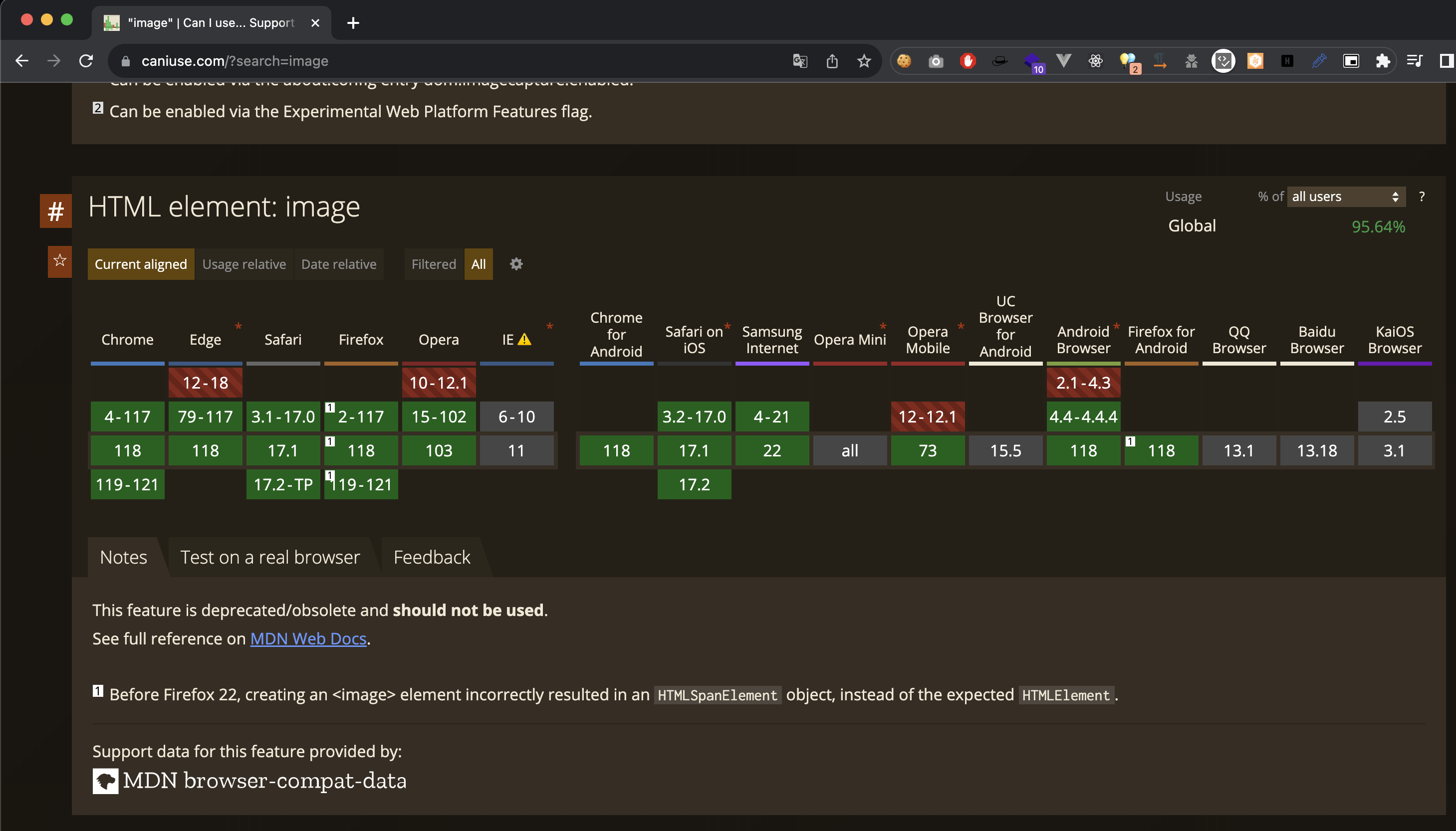 caniuse에서 확인 해보면 대다수의 브라우저가 아직까진 image 태그를 지원하고 있다.