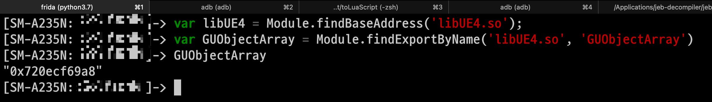 GUObjectArray는 export해서 사용하고 있으므로 frida에서 바로 가져올 수 있는데,